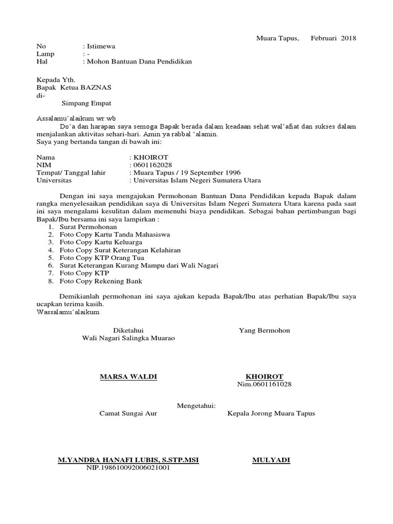 Amil Zakat Contoh Surat Permohonan Bantuan Baznas